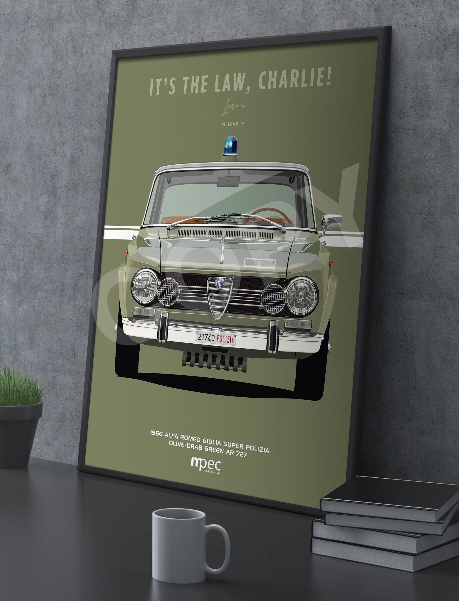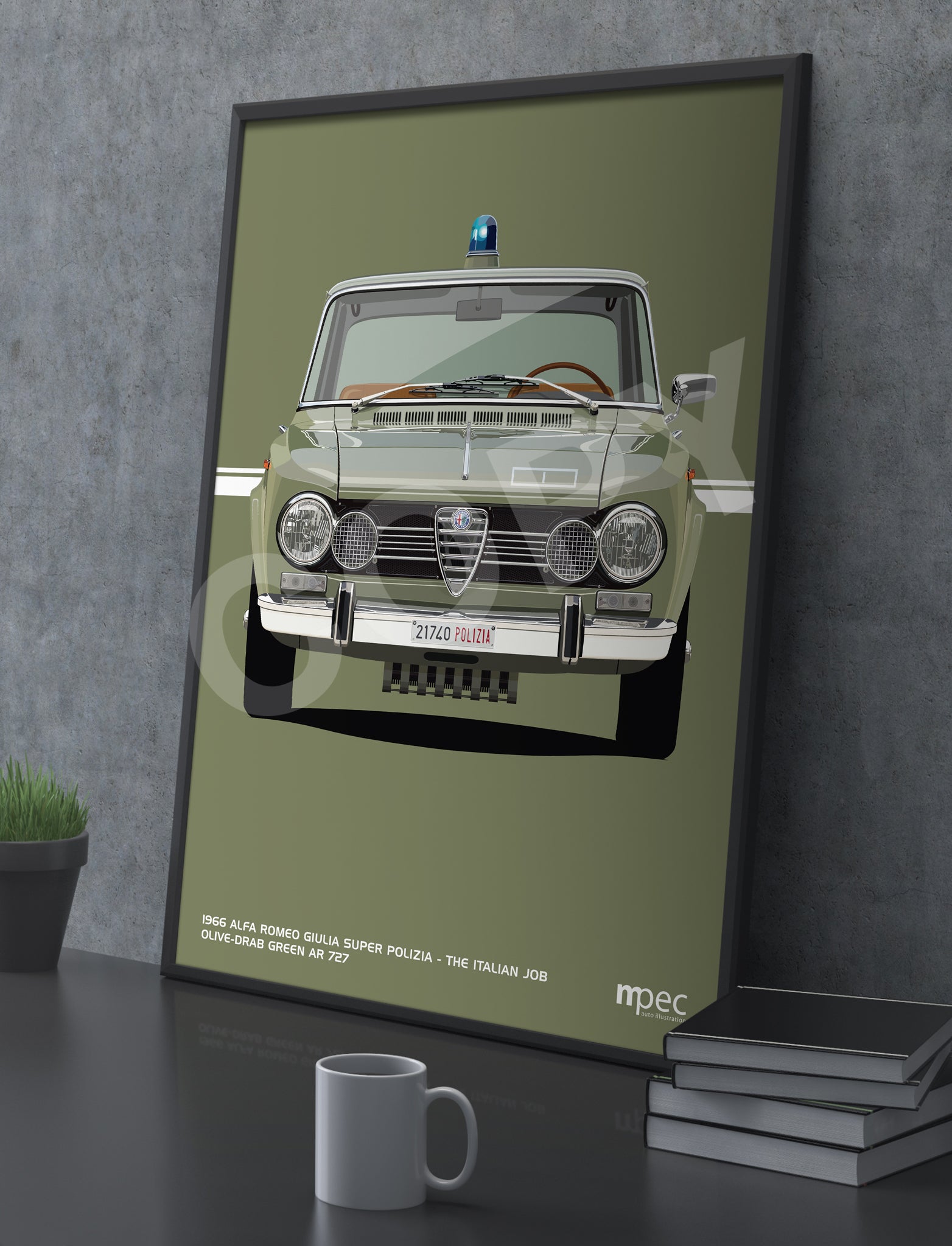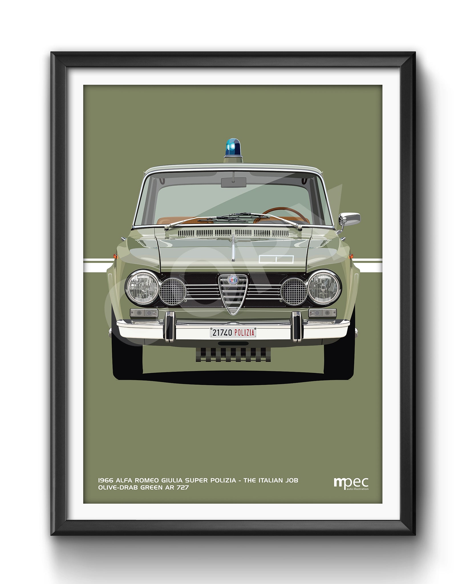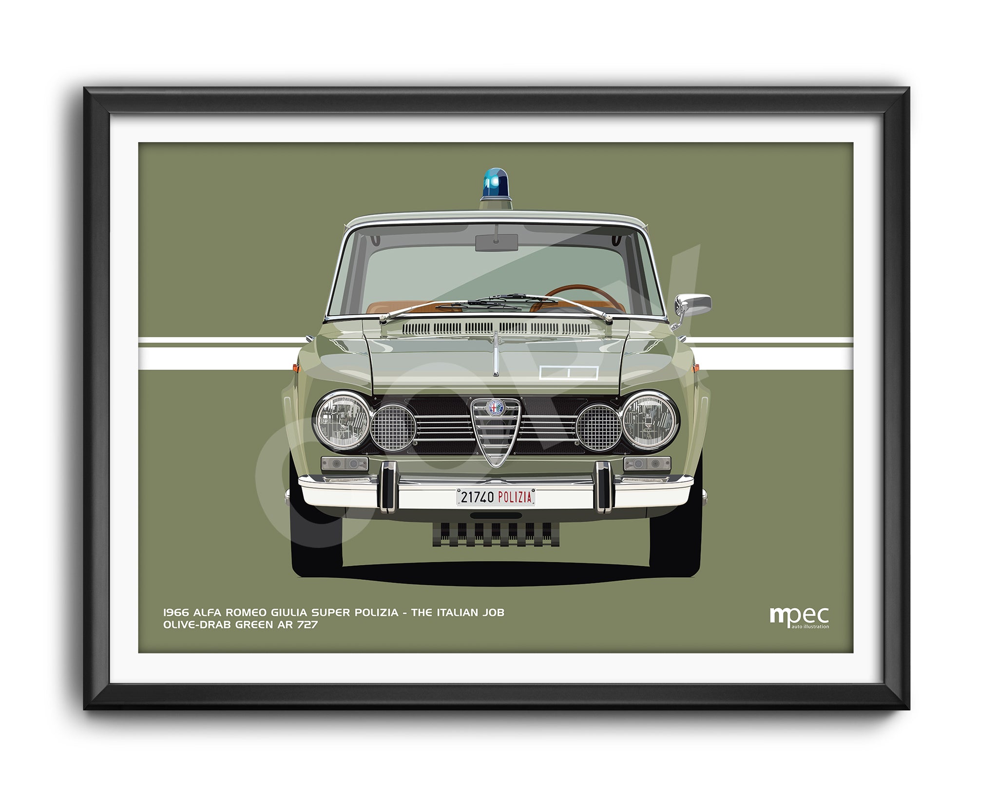 In the original 1969 The Italian Job, Alfa Romeo Giulia sedans were memorably cast as the Italian police cars pursuing the Mini Coopers through the streets of Turin. Portrayed as somewhat ill-fated and prone to spectacular crashes, the Giulia was in reality a lightweight, high-performance, and highly agile sports saloon - seemingly destined to serve as an ideal patrol car in its native Italy. During the 1960s, vehicles operated by the Italian State Police were finished in a distinctive non-metallic olive-drab green, a colour now synonymous with the era.