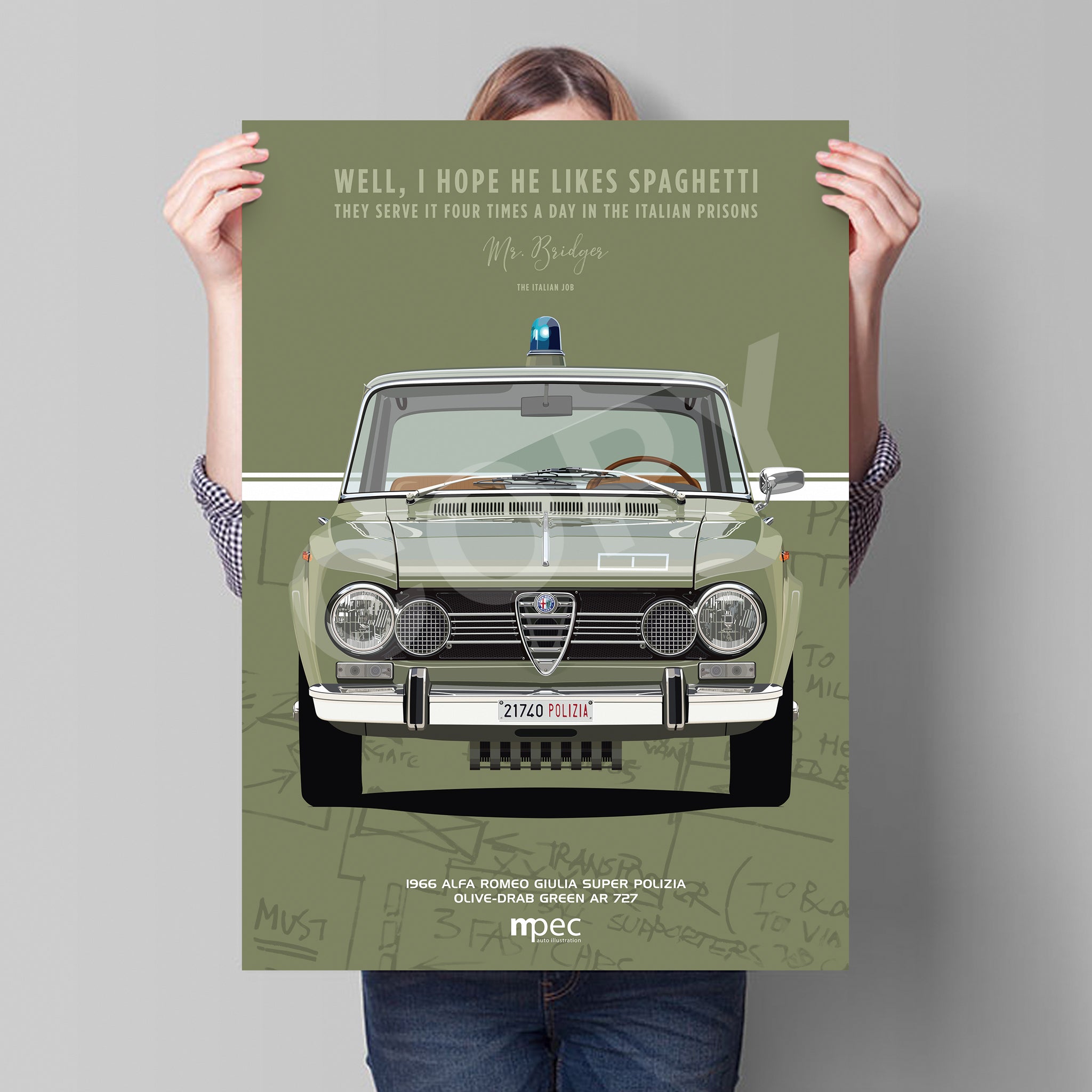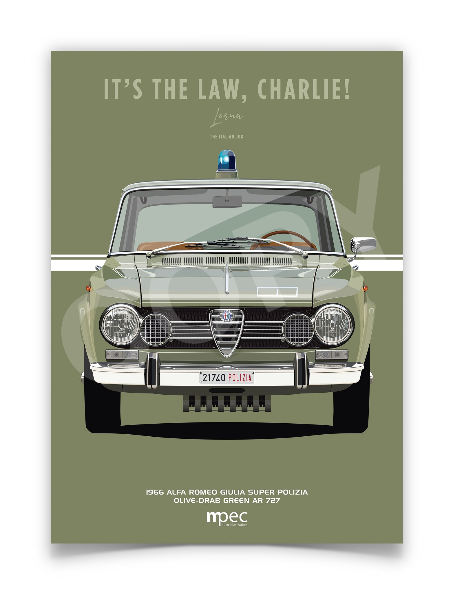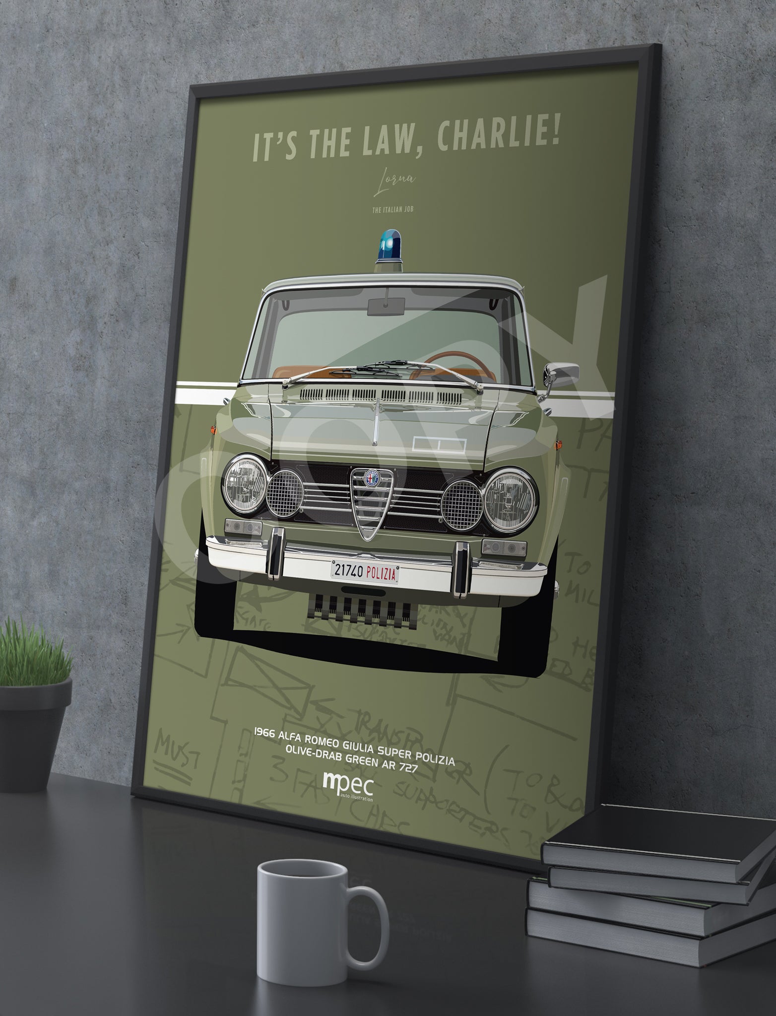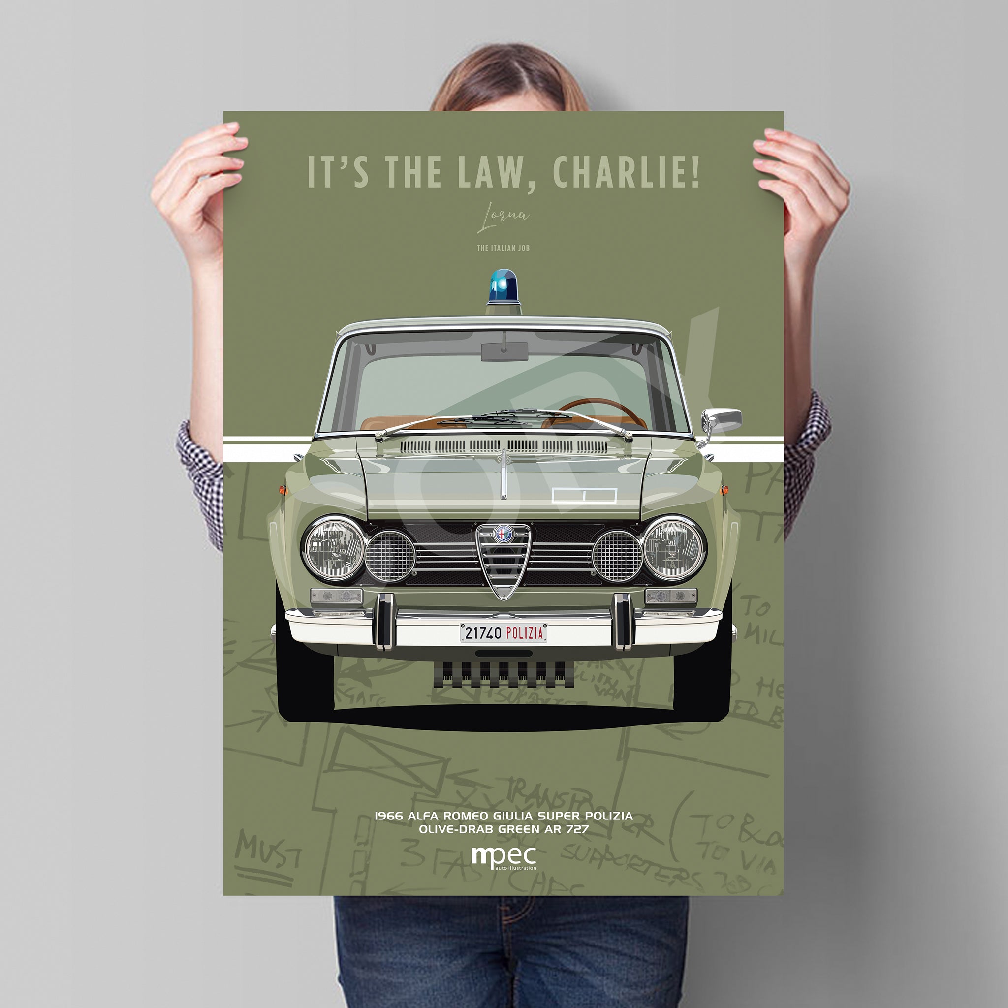In the original 1969 The Italian Job, Alfa Romeo Giulia sedans were memorably cast as the Italian police cars pursuing the Mini Coopers through the streets of Turin. Portrayed as somewhat ill-fated and prone to spectacular crashes, the Giulia was in reality a lightweight, high-performance, and highly agile sports saloon - seemingly destined to serve as an ideal patrol car in its native Italy. During the 1960s, vehicles operated by the Italian State Police were finished in a distinctive non-metallic olive-drab green, a colour now synonymous with the era.