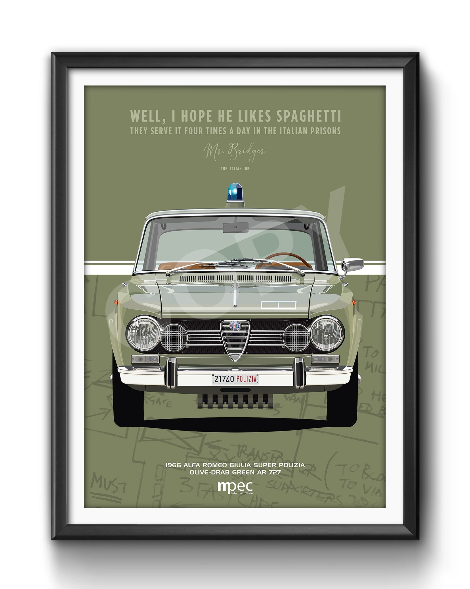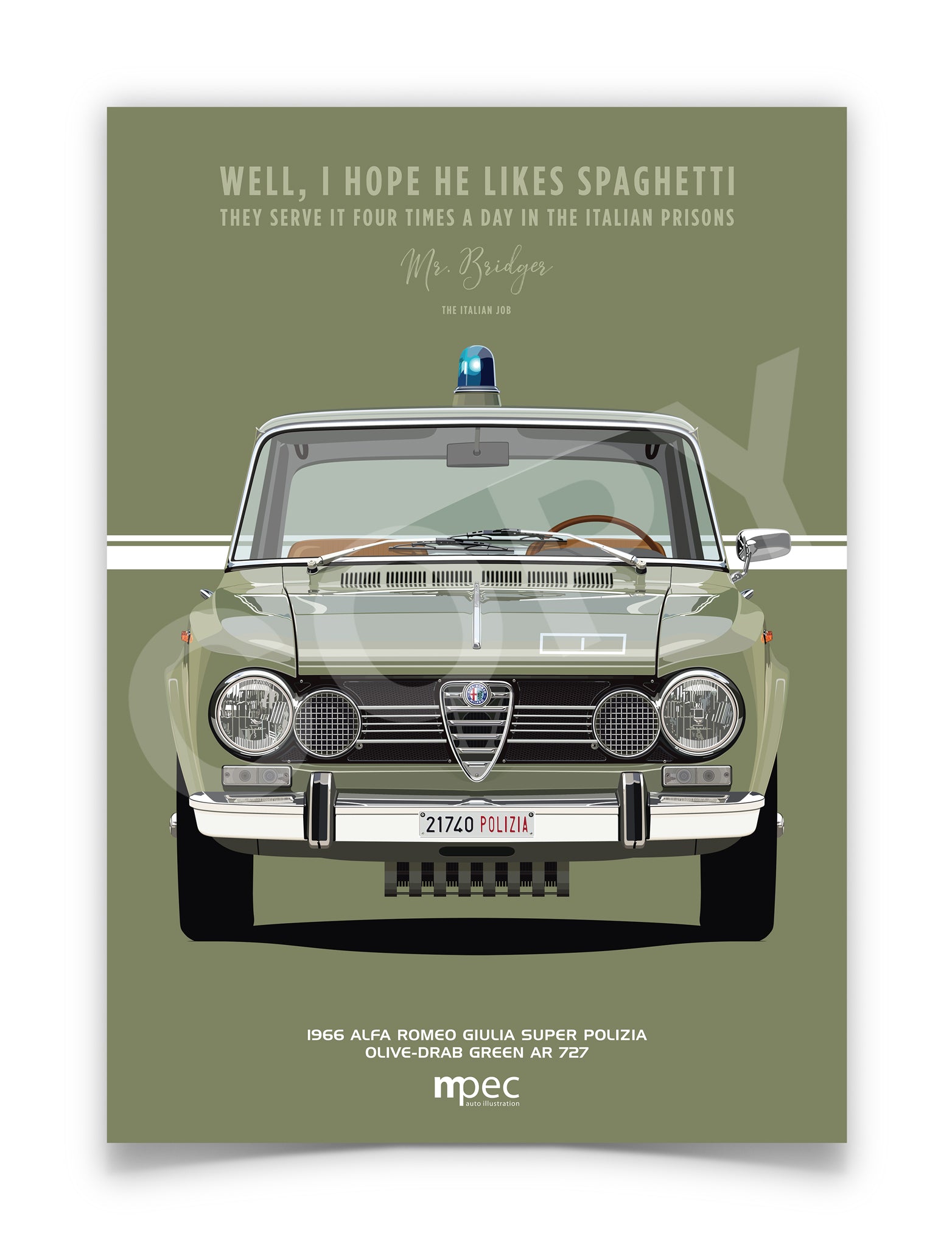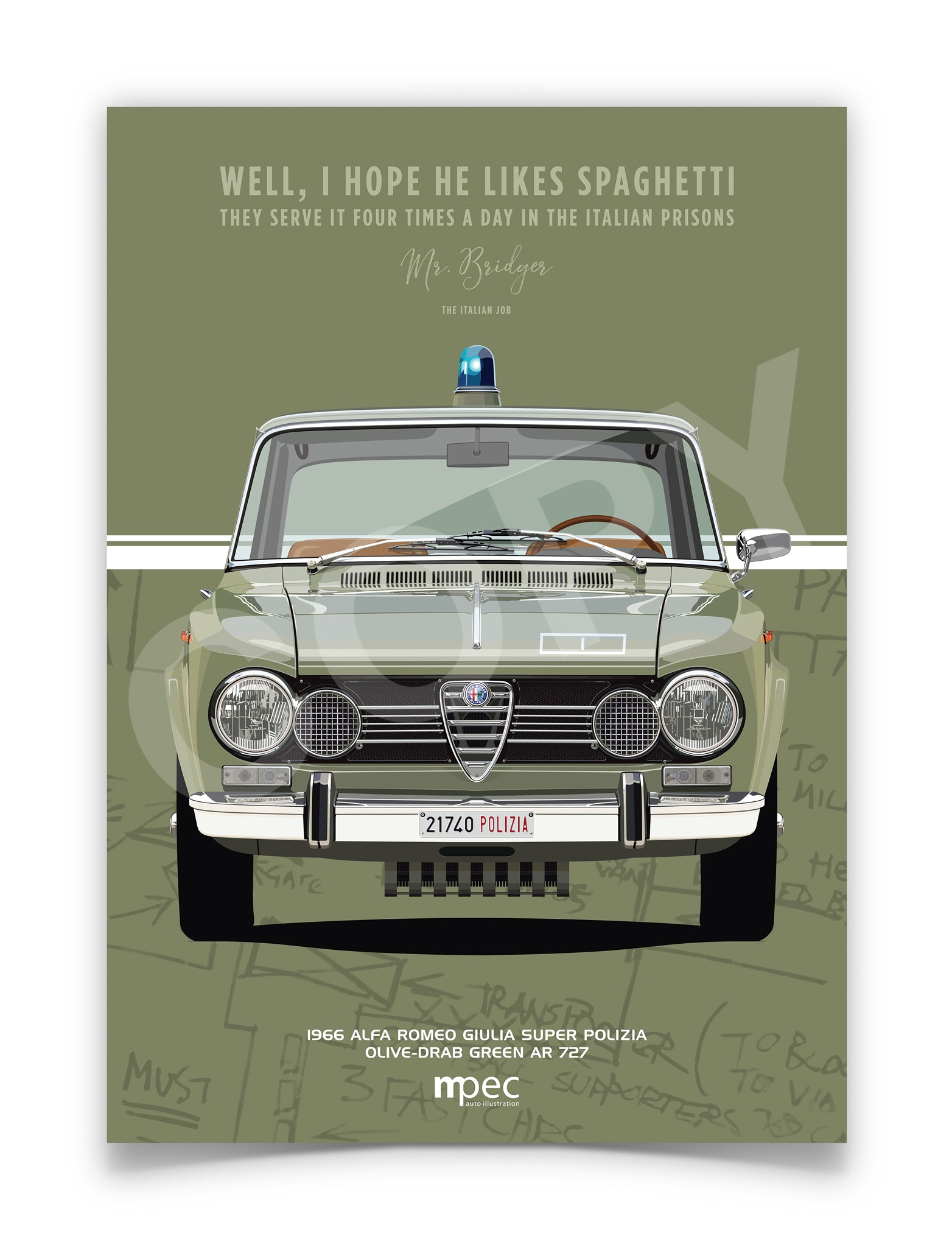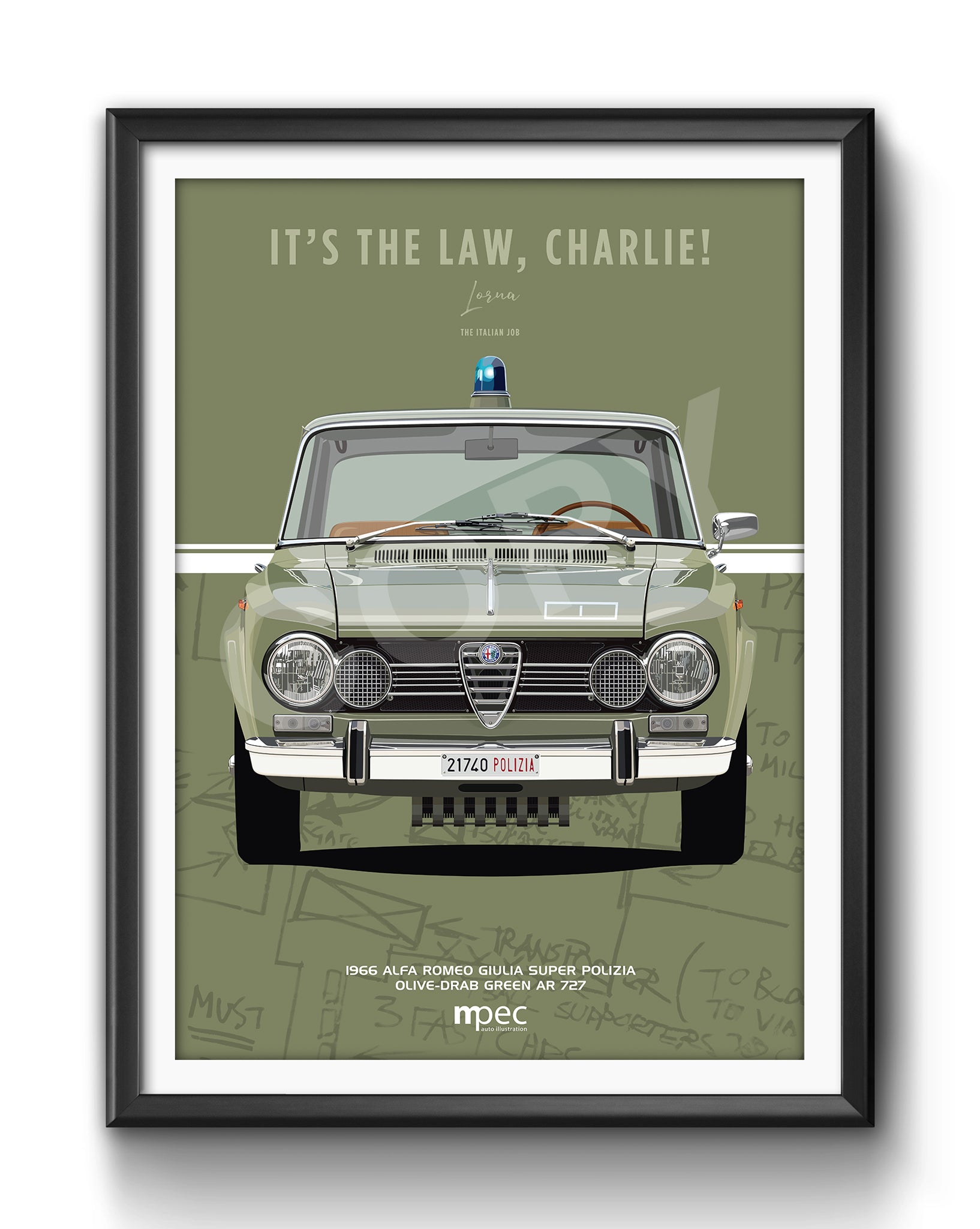In the original 1969 The Italian Job, Alfa Romeo Giulia sedans were memorably cast as the Italian police cars pursuing the Mini Coopers through the streets of Turin. Portrayed as somewhat ill-fated and prone to spectacular crashes, the Giulia was in reality a lightweight, high-performance, and highly agile sports saloon - seemingly destined to serve as an ideal patrol car in its native Italy. During the 1960s, vehicles operated by the Italian State Police were finished in a distinctive non-metallic olive-drab green, a colour now synonymous with the era.
